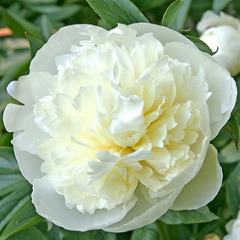 Чудесный пион Дюшес де Немур представляет собой крупный цветок молочно-белого цвета с кремовой сердцевиной. Густо собранные махровые лепестки образуют невероятно пышный цветок, источающий сладкое благоухание, недаром Дюшес де Немур считается одним из лучших ароматных сортов пионов.